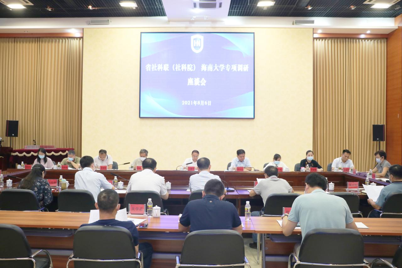 本站讯(记者/摄影 徐士闲)8月6日上午,省社科联(社科院)专项调研座谈会在海南大学思源学堂多功能厅召开。省社科联(社科院)党组书记、主席、院长王惠平,专职副主席、副院长詹兴文,专职副主席、副院长李星良;海南大学党委副书记、校长、中国科学院院士骆清铭,副校长傅国华,党委常委、副校长王崇敏,党委常委、副校长叶光亮出席会议。座谈会由王崇敏主持?;嵋橹荚诓檎沂∩缈屏ㄉ缈圃海┰诜裆缈疲ń萄В┗?、新型...