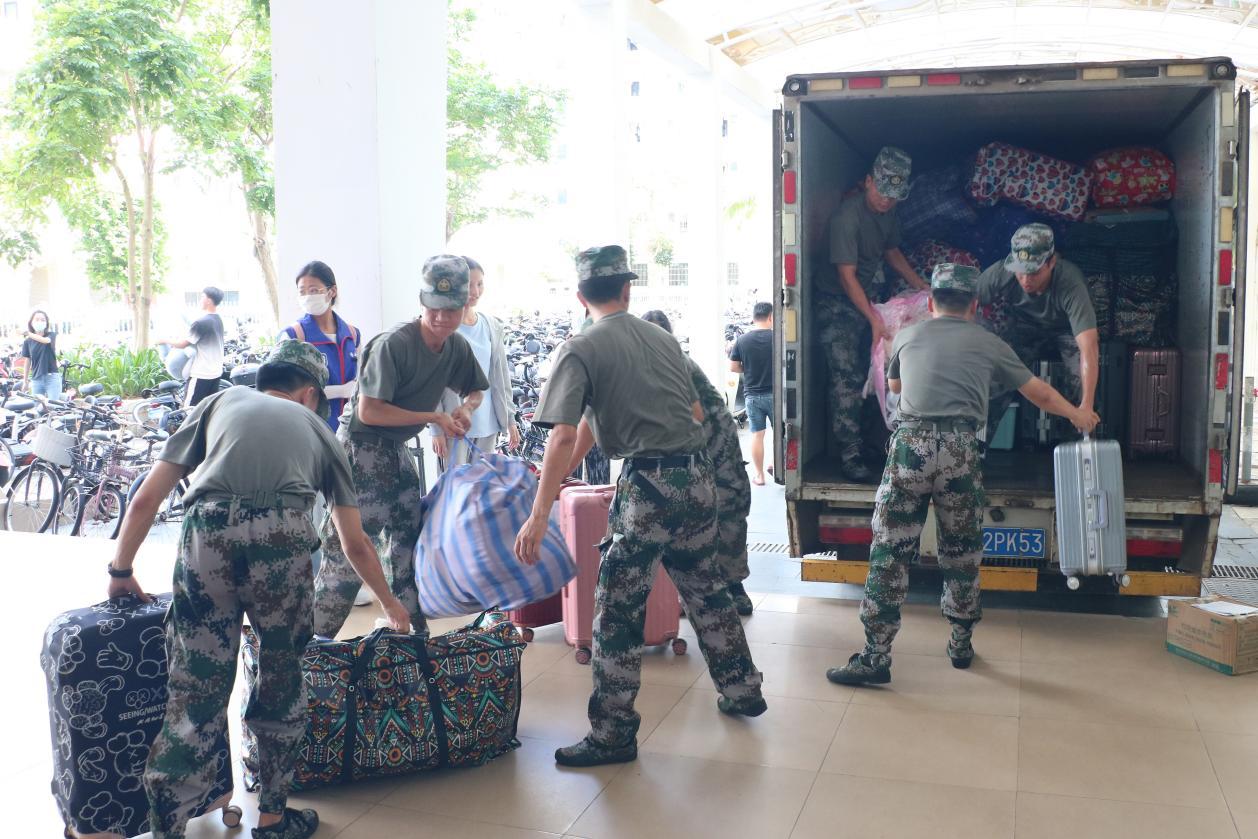 本站讯(记者/摄影 徐士闲)8 月 27 日至 28 日,根据学校统一部署,海南大学共有7个学院的2117名2020级本科生从城西文科基础教学部搬迁至海甸校区。??教官队、志愿者协助搬迁。 徐士闲 摄?在本次搬迁工作中,学校共协调安排搬迁客车55辆、货车86辆,以学院为单位进行接送,并安排有专门车辆进行引导,确保车队安全有序通行。每辆搬迁车辆都安排有随车教师和工作人员,负责学生行李堆放、现场对接和上下车安全。在两校区宿舍楼...