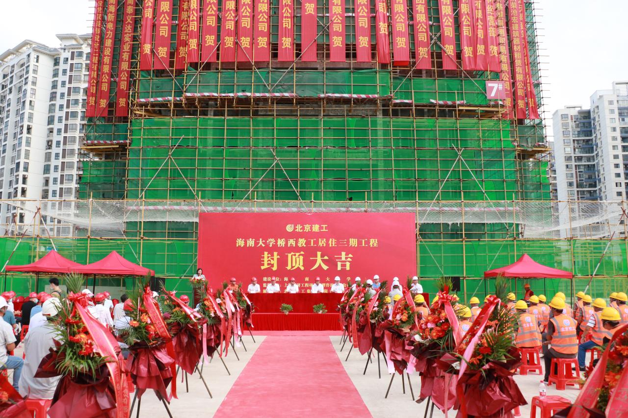 本站讯(学生记者/摄影 张赫)9月10日上午,随着最后一方混凝土浇筑到位,海南大学桥西教工居住区第三期工程项目主体正式封顶。海南大学党委书记符宣国,校长骆清铭,党委常委、副校长梁谋,党委常委、副校长叶光亮出席封顶仪式。海南大学桥西教工居住区第三期工程项目位于海甸五西路以南,于2020年6月20日动工。小区以高层住宅为主,拥有888套住房,总建筑面积约12.3万平方米,投资估算约5.29亿元。该项目建成后,将有效解决部...