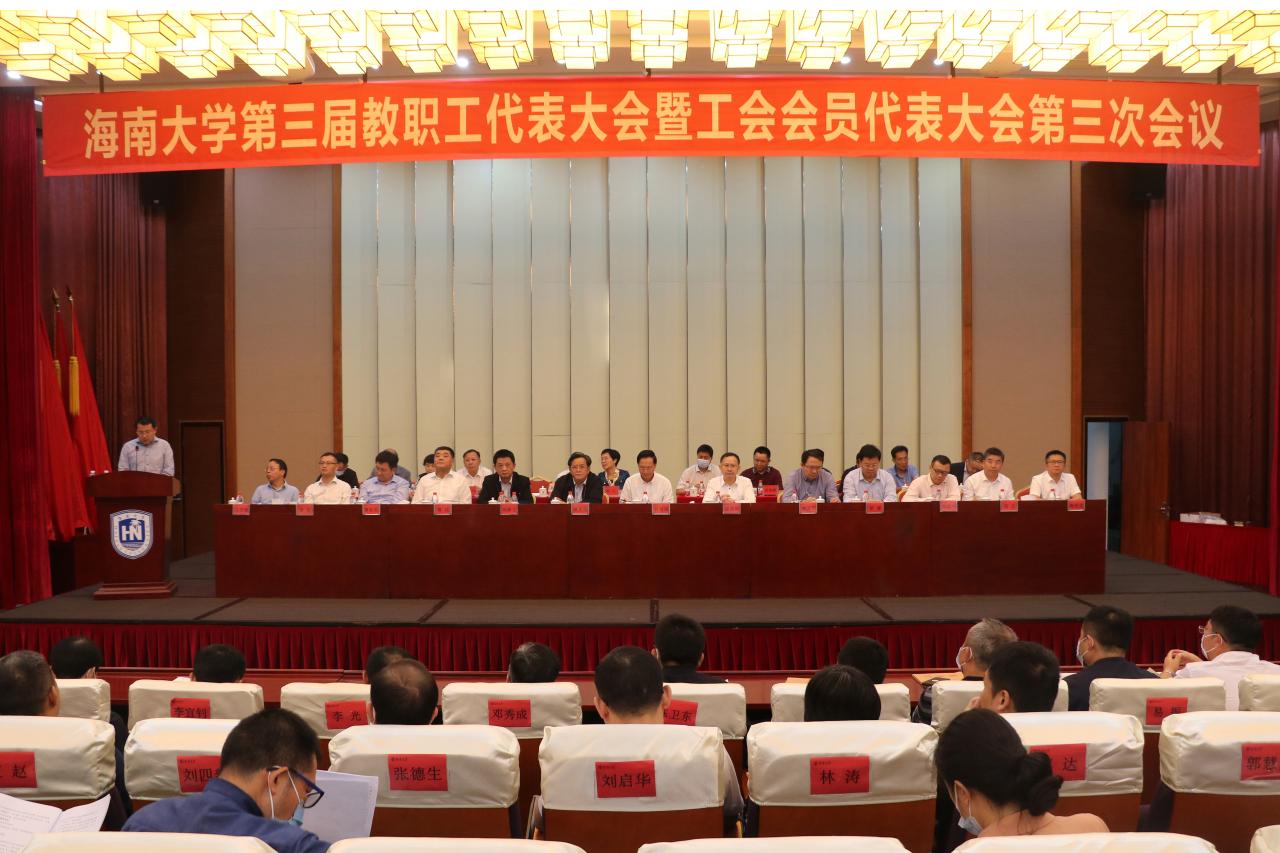 本站讯(记者 余梦月 许劲草)10月22日,海南大学第三届教职工代表大会暨工会会员代表大会第三次会议在社科楼二楼报告厅召开。部省合建高校党建工作联络员谭基虎到会指导;海南大学党委常委和校领导符宣国、骆清铭、傅国华、胡新文、王崇敏、梁谋、曹兵、郑尉杰、曹宪忠、范文、谭勇、陈明宝出席会议?;嵋橛筛毙3ね醭缑糁鞒??;嵋橄殖?。 李天畅 摄?符宣国讲话。 陈梦馨 摄?校党委书记符宣国作《凝聚共识 开拓创新 奋力推进学校高质量发展》...