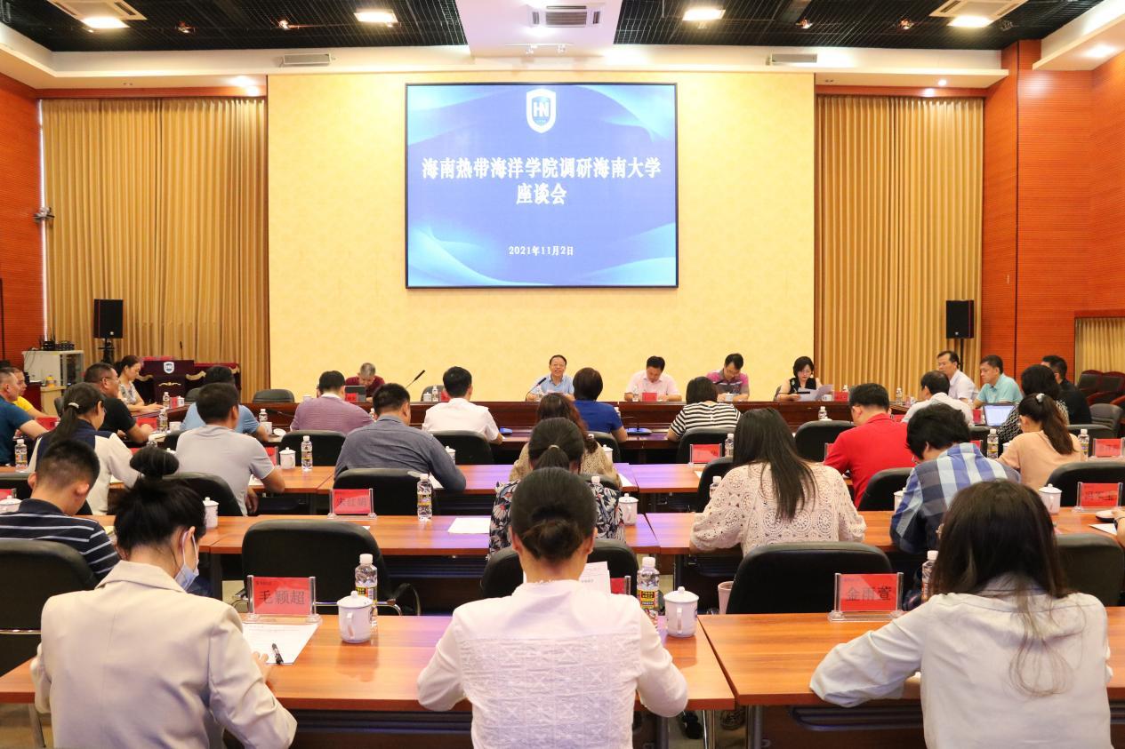 本站讯(记者 徐士闲 董澄和)11月1日至2日,海南热带海洋学院党委委员、副校长刘湘洪一行到海南大学调研,并在思源学堂多功能厅举行座谈会。海南大学党委常委、副校长王崇敏出席并主持会议。与会双方围绕党建“双创”工作、思想政治工作体系建设、思想政治和党务工作队伍建设、“三全育人”改革等内容进行了深入交流。刘湘洪一行还实地考察了法学院、外国语学院、机电工程学院、马克思主义学院和植物?;ぱг?,详细了解了海南...
