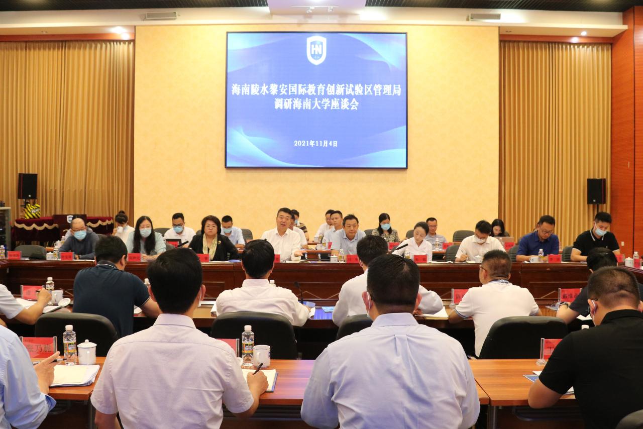 本站讯(记者 徐士闲)11月4日上午,海南省教育厅一级巡视员、海南陵水黎安国际教育创新试验区(以下简称“试验区”)管理局副局长武耀廷一行到海南大学调研,并在思源学堂多功能厅举行座谈会。试验区管理局提名副局长刘明,海南大学党委常委和校领导符宣国、梁谋、叶光亮、谭勇、陈明宝出席会议。会议由校党委书记符宣国主持。武耀廷对海南大学支持试验区建设的积极举措和大力投入表示感谢,并简要介绍了试验区的整体规划和发...