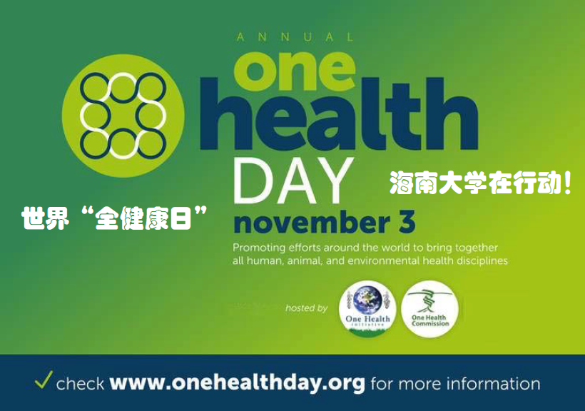 本站讯(记者 李康龙)11月3日是“全健康日”(One Health Day),海南大学策划开展了丰富多彩的“全健康日”活动,组织师生志愿者在学校校区及周边中小学校(幼儿园)等地,向师生及社会大众普及全健康理念。海南大学“全健康日”海报。“全健康”是一种理念,追求的是“人类健康、动物健康和环境健康”三者合一的健康整体,涉及人类和动物健康、环境卫生、食品安全与农业生产等方面。“全健康日”是由全健康委员会、全健康倡议自...