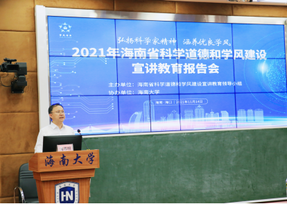本站讯(记者 张赫)11月14日,海南省科学道德和学风建设宣讲教育报告会在海南大学举行。中国科学院院士、中国科学院神经科学研究所学术所长和脑科学与智能技术卓越创新中心主任、上海脑科学与类脑研究中心主任蒲慕明受邀作报告,中国科学院院士、海南省科学技术协会主席、海南大学校长骆清铭主持报告会。线上线下约有6万人收看了报告。??? 蒲慕明院士作报告? 蒲慕明作题为《谈科研诚信与创新》的宣讲报告,他从科研伦理准则、...