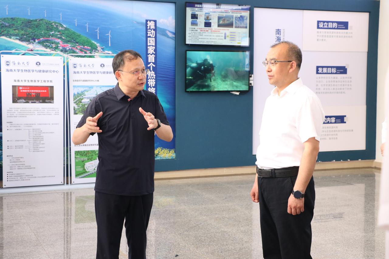 本站讯(记者/摄影 张赫)5月24日上午,山西省副省长于英杰一行到海南大学调研,中国科学院院士、海南大学校长骆清铭陪同调研。于英杰一行实地考察调研了南海海洋资源利用国家重点实验室、代谢生物学实验室、天然橡胶省部共建协同创新中心等,详细了解海南大学七大协同创新中心建设情况、南海海洋资源利用国家重点实验室研究方向和天然橡胶省部共建协同创新中心远景规划等。海南大学相关职能部门负责人参加调研。(编辑:王一钦
