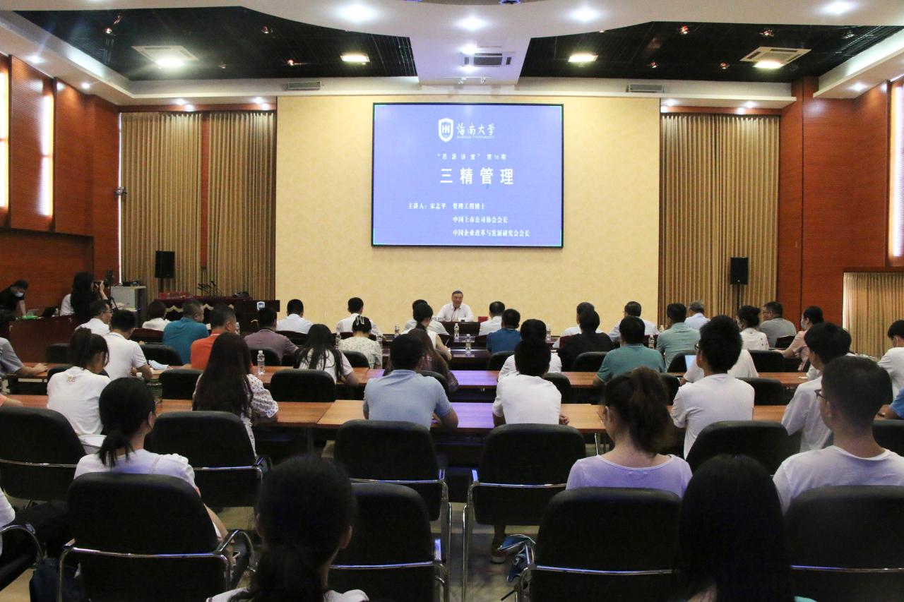 本站讯(记者 董澄和)6月24日上午,中国上市公司协会会长、中国企业改革与发展研究会会长宋志平应邀在海南大学思源学堂多功能厅作“三精管理”专题讲座。中国科学院院士、海南大学校长骆清铭,党委常委、副校长叶光亮参加。宋志平以“三精管理”为主题,聚焦企业经营管理的关键要点,结合自身实践经验,从组织、管理、经营三方面详细讲解了以组织精健化、管理精细化和经营精益化为核心的“三精十二化”内涵。“经营是做正确的...