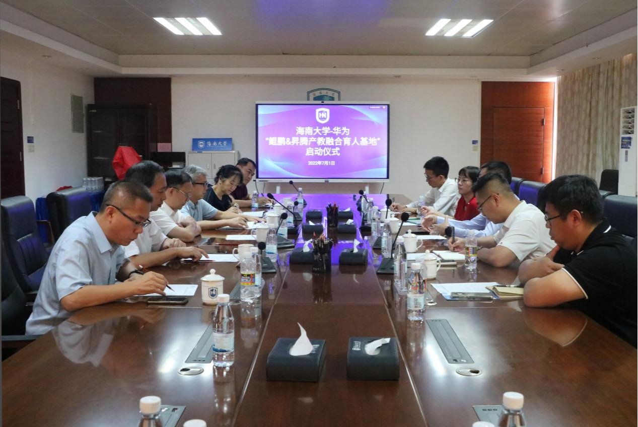 本站讯(记者/摄影 董澄和)7月1日上午,海南大学-华为“鲲鹏&昇腾产教融合育人基地”启动仪式在办公楼501会议室举行。华为鲲鹏计算业务总裁张熙伟;中国科学院院士、海南大学校长骆清铭出席仪式。骆清铭介绍了学校在师资队伍建设、学科建设、招生规模、人才培养、科技创新等方面的基本情况和取得的成效。他指出,信息技术是未来发展的重点领域,希望能够与华为公司加强合作,通过共建“鲲鹏&昇腾产教融合育人基地”开展人才...
