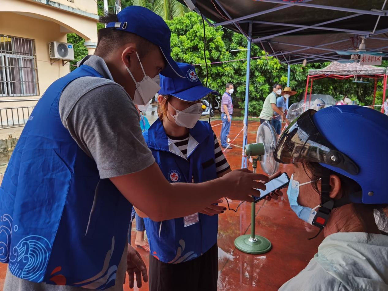 本站讯(记者 王博)8月10日深夜,刚刚抵达海南大学支援陵水抗击疫情志愿服务队驻地的团干部罗富晟老师,来不及休整,就接到了第二日的“追阳”任务。他打开电脑,立即开始熟悉陵水县英州镇的核酸混管检测异常人员信息,并做好了电话流调和上门排查的准备。罗富晟给混采核酸异常涉及人员拨打电话?!澳茫沂怯⒅菡蚣部刂行墓ぷ魅嗽?,请问您现在是在XX小区(XX村)吗?您家里有几口人,近期有外出吗?好的,请您现在开始不要...